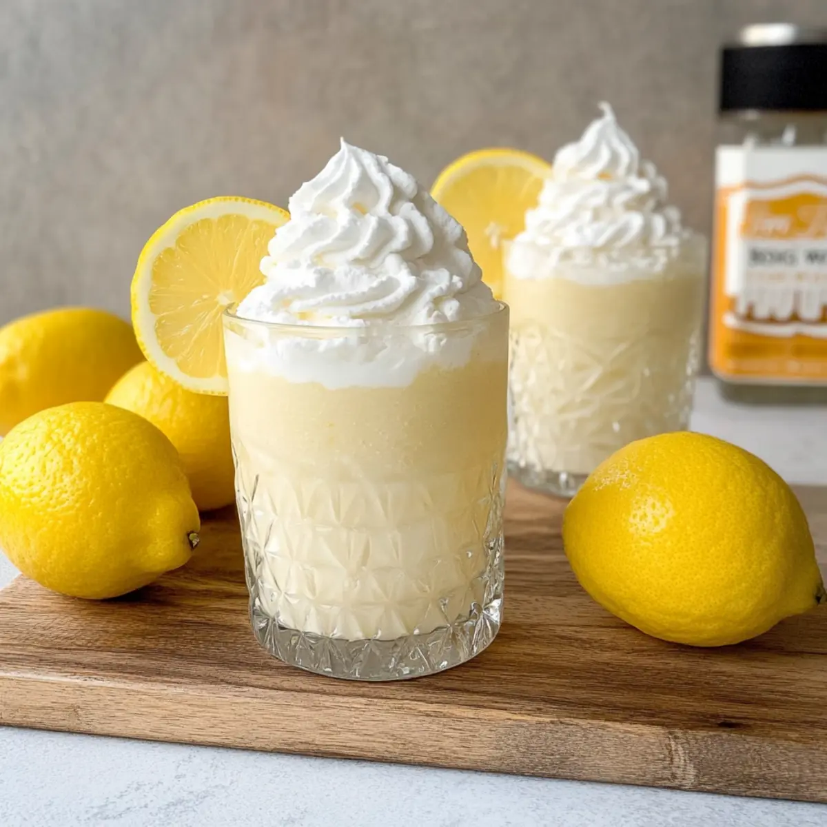 - Optional: Top each glass with whipped cream and garnish with lemon wheels before serving.