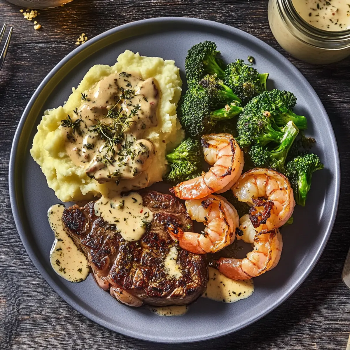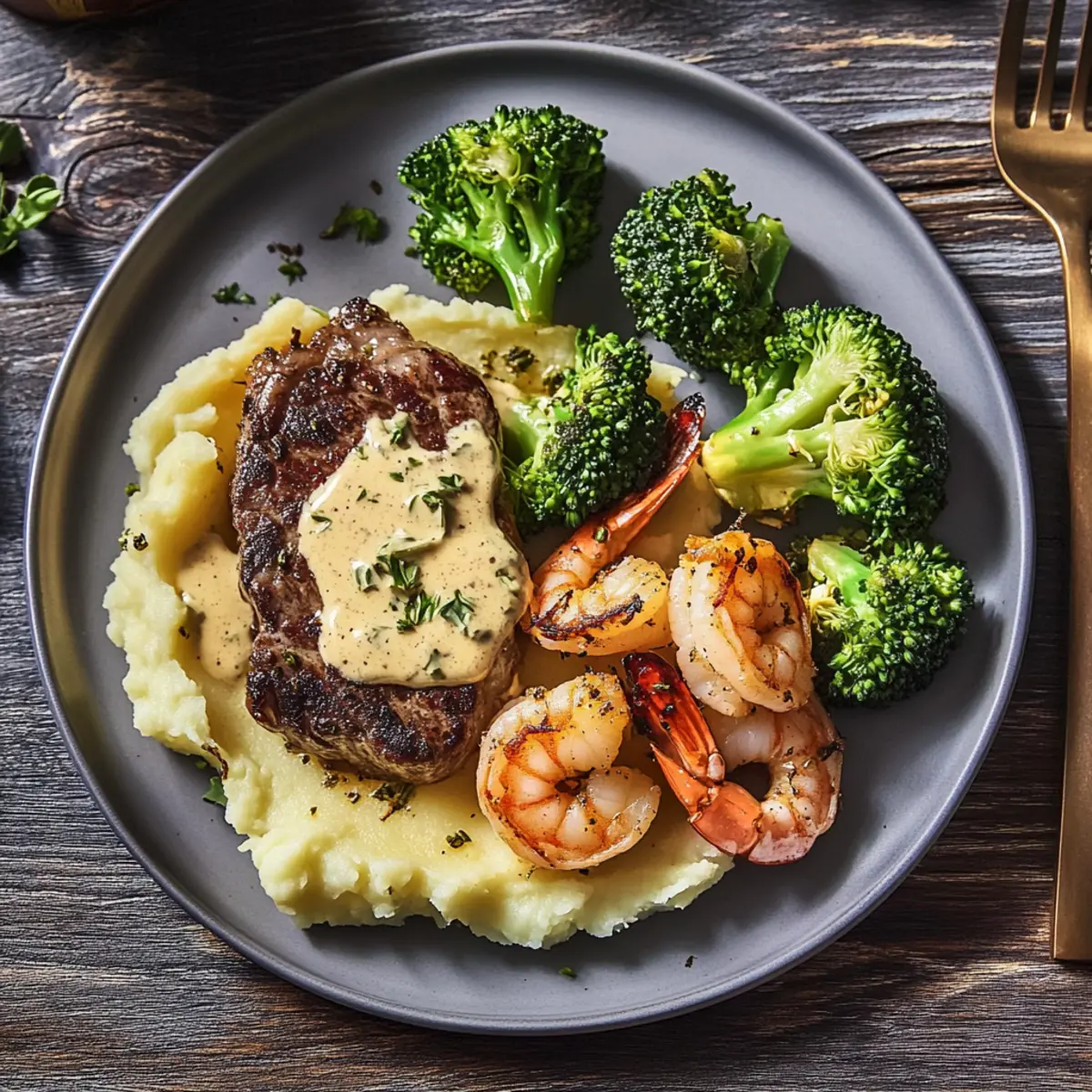 These Classic Surf and Steak Dinner components are perfect for meal prep enthusiasts looking to save time during the week! You can prepare the mashed potatoes and roasted broccoli up to 24 hours in advance. Simply mash the potatoes and refrigerate them in an airtight container; reheat gently with a splash of cream for that fresh, velvety texture. The broccoli can be roasted, cooled, and stored in the fridge, then reheated just before serving for a delicious crunch. When you’re ready to enjoy your meal, simply cook the steak and shrimp (which can also be seasoned ahead) and whip up the creamy tarragon sauce. This way, you’ll have a restaurant-quality dinner with minimal effort!