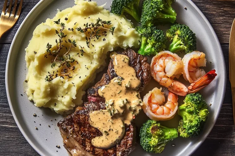- Creamy Mashed Potatoes: The velvety texture of mashed potatoes complements the steak and shrimp, making every bite rich and satisfying.