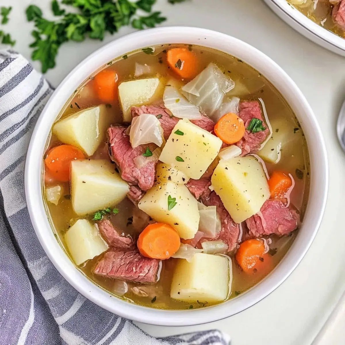 Garnish for Freshness: Consider garnishing with chopped fresh herbs or a sprinkle of black pepper for an extra flavor boost, making your corned beef stew even more inviting!