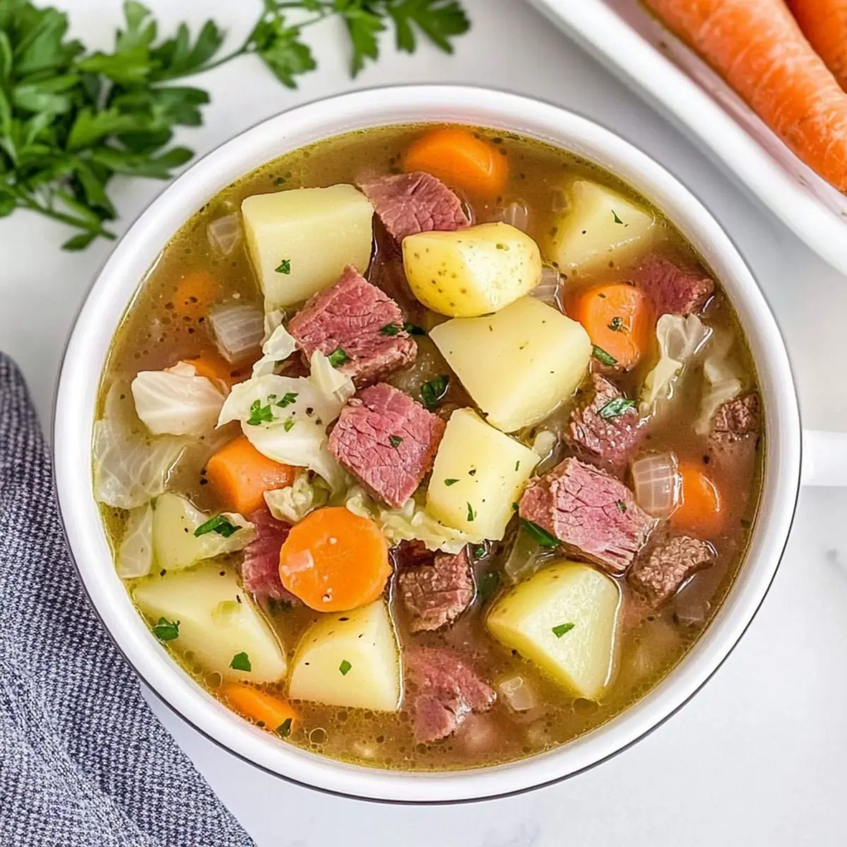 Embrace the charm of this corned beef stew by gathering these ingredients, and get ready to savor the warmth it brings to your home!