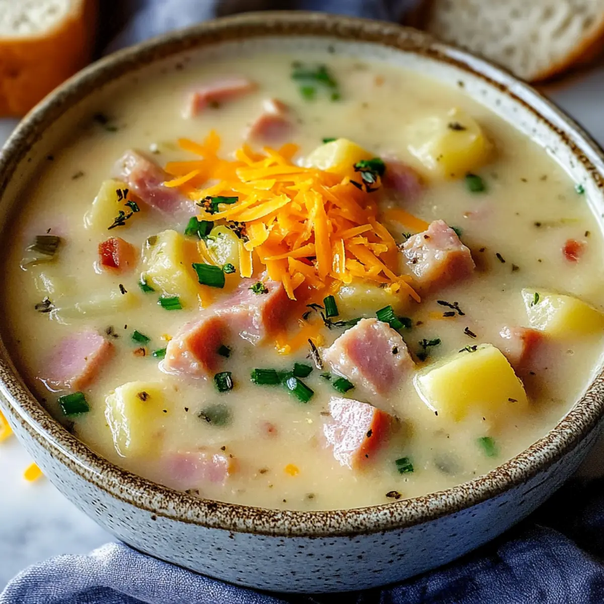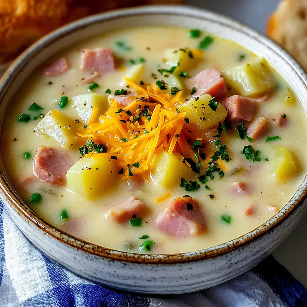Comforting warmth: This Creamy Potato and Ham Soup is like a hug in a bowl, perfect for chilly nights.