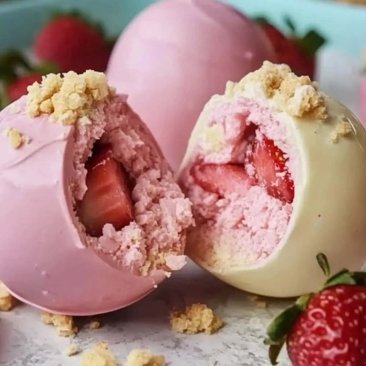 Delightfully Surprising: These Easter Strawberry Egg Bombs combine the playful shape of chocolate eggs with the classic flavors of strawberry shortcake, making each bite a delightful surprise.