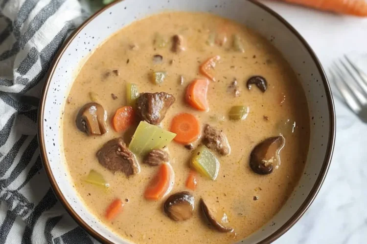 This Easy Beef Vegetable Soup is a creamy and comforting dish perfect for chilly nights, featuring tender beef and fresh vegetables.
