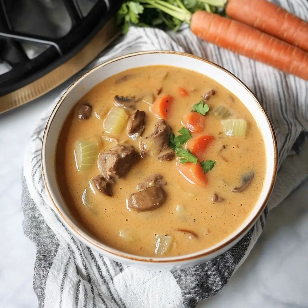 Absolutely! If you’re preparing this soup for individuals with dietary restrictions, you can easily make modifications. For gluten-free options, use cornstarch instead of all-purpose flour and ensure your beef broth is gluten-free. If anyone has dairy allergies, consider substituting the heavy cream with coconut milk or leaving it out entirely for a lighter soup. Always be sure to check the labels of your ingredients for allergies as needed.