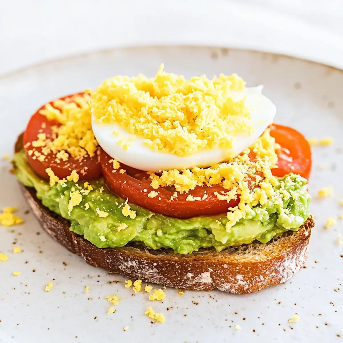 These Grated Egg Avocado Toasts are perfect for busy home cooks looking to streamline their mornings! You can prepare the hard-boiled eggs up to 3 days in advance; just refrigerate them in an airtight container to keep them fresh and easy to grate. The avocado spread can be made up to 24 hours before serving—just mash it and store it in a bowl covered tightly with plastic wrap to prevent browning. When you’re ready to assemble your toast, simply toast your bread to your liking, spread the avocado, layer with sliced tomato, and grate your prepped egg on top. This way, you’ll enjoy delicious results with minimal effort, making it a breeze to start your day right!