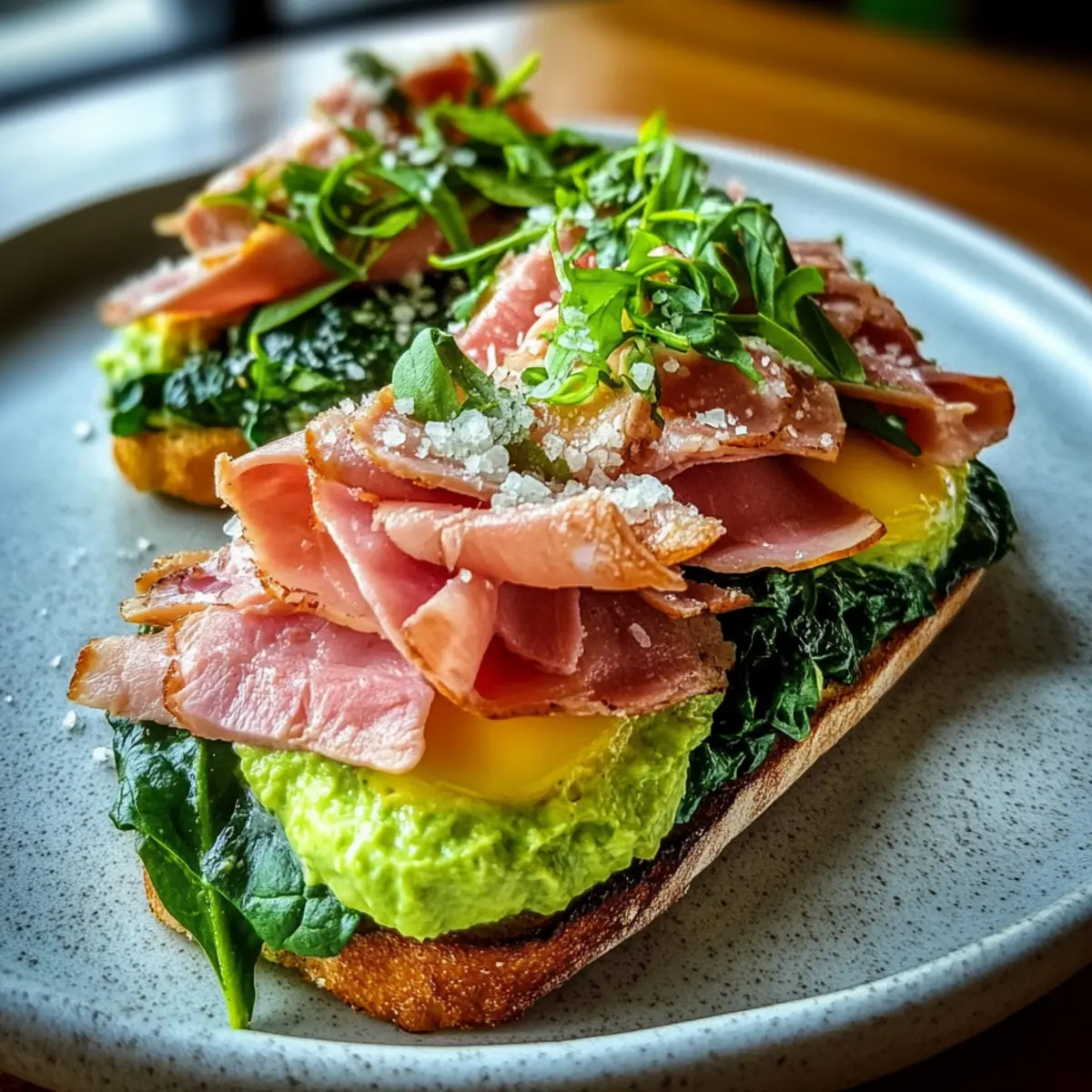 • Ham (4 slices) – Offers a savory punch; alternatives include turkey bacon, sautéed mushrooms, or smoked salmon for variety.