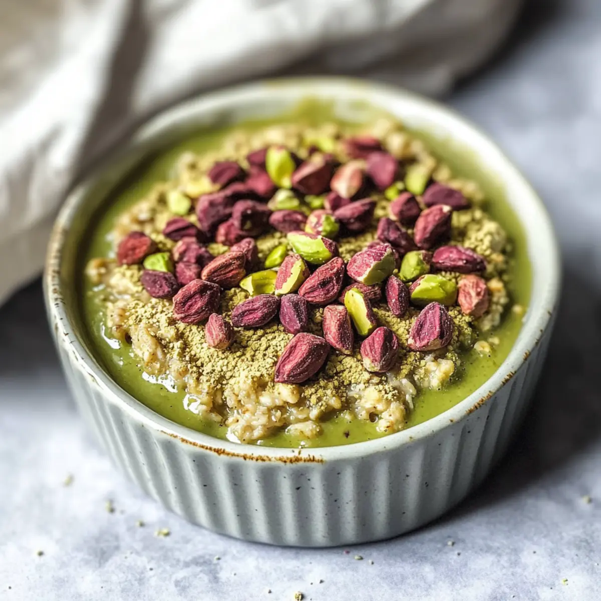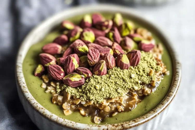 Nutritious Matcha Baked Oats with Creamy Pistachio Bliss