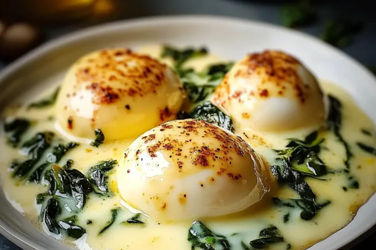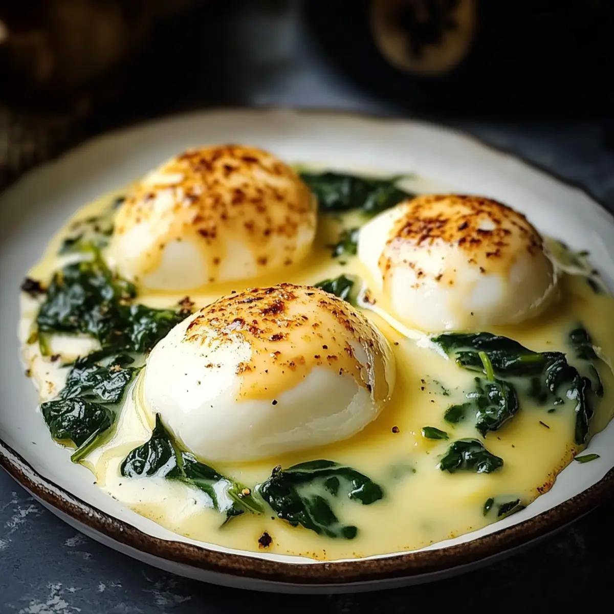 These Mollet Eggs Florentine are perfect for busy cooks looking to save time! You can prepare the spinach and Mornay sauce up to 3 days in advance; simply refrigerate them separately in airtight containers. When ready to serve, reheat the sautéed spinach gently on the stovetop and warm the Mornay sauce slowly, whisking to incorporate air for a velvety texture. To finish, layer the spinach in an ovenproof dish, place the cooled eggs on top, and pour the heated Mornay sauce over everything. Broil for 5 minutes until bubbly and golden — it’s just as delicious as if you made it fresh! Enjoy a stress-free yet gourmet brunch experience!