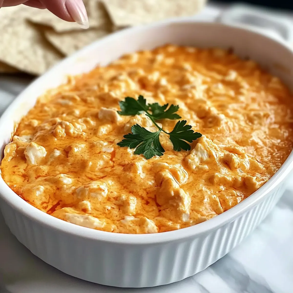 Once your Mouthwatering Buffalo Chicken Dip is out of the oven, allow it to cool for a minute before serving. Pair it with tortilla chips, carrot sticks, or celery for dipping. This adds a satisfying crunch that contrasts wonderfully with the creamy dip. Garnish with chopped fresh parsley for a splash of color and freshness.