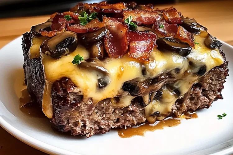 Mushroom Meatloaf is a comforting blend of ground beef, Swiss cheese, and crispy bacon that promises to delight your family and friends.