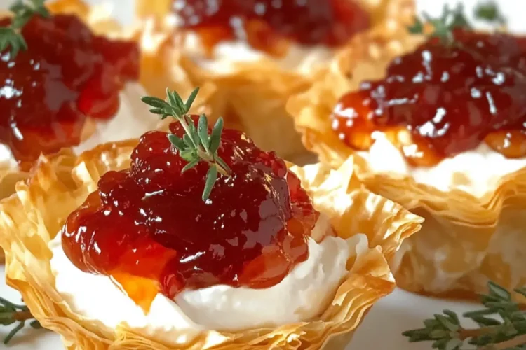 Next, it’s time to add that vibrant pepper jelly! Carefully add approximately 1/2 teaspoon of red pepper jelly atop each filled phyllo shell. The glossy, colorful jelly should sit perfectly on the cream cheese, creating a stunning visual contrast. This layer of sweetness with a kick is what makes the Pepper Jelly Cream Cheese truly shine.