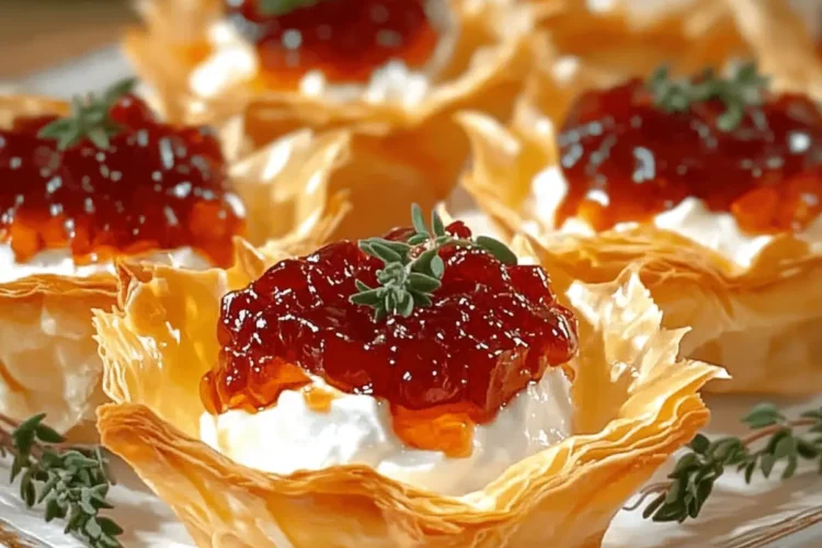 Very! If your phyllo shells are soggy, it might be due to overfilling or not baking them long enough. To prevent this, ensure you don’t overfill them; stick to about a teaspoon of cream cheese and half a teaspoon of jelly. Always bake fresh, and if cooling them, store them in a single layer to avoid steam gathering. If you encounter soggy phyllo, reheat them in a 350°F oven for about 5–7 minutes to refresh their crispness.