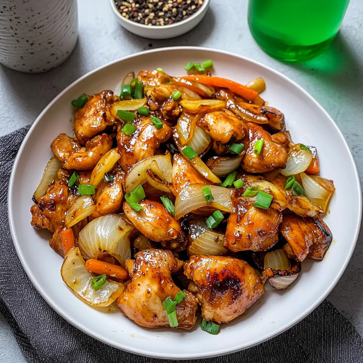 As I stirred the sizzling chicken thighs in my pan, the unmistakable aroma of garlic and soy sauce wafted through my kitchen, instantly transporting me to bustling streets of Asia. This Quick Chicken Thigh Stir Fry has become my secret weapon for busy weeknights, delivering tender, juicy chicken in under 30 minutes. Packed with protein and low in fat, it’s not just a time-saver; it transforms ordinary ingredients into a vibrant, satisfying meal that warms the soul. The natural sweetness of onions and carrots elevates this dish, while a splash of rice wine adds an exquisite finish that feels indulgent without the fuss. Are you ready to make dinner a delightful experience once more? Let’s dive into the magic of this quick and easy stir fry!