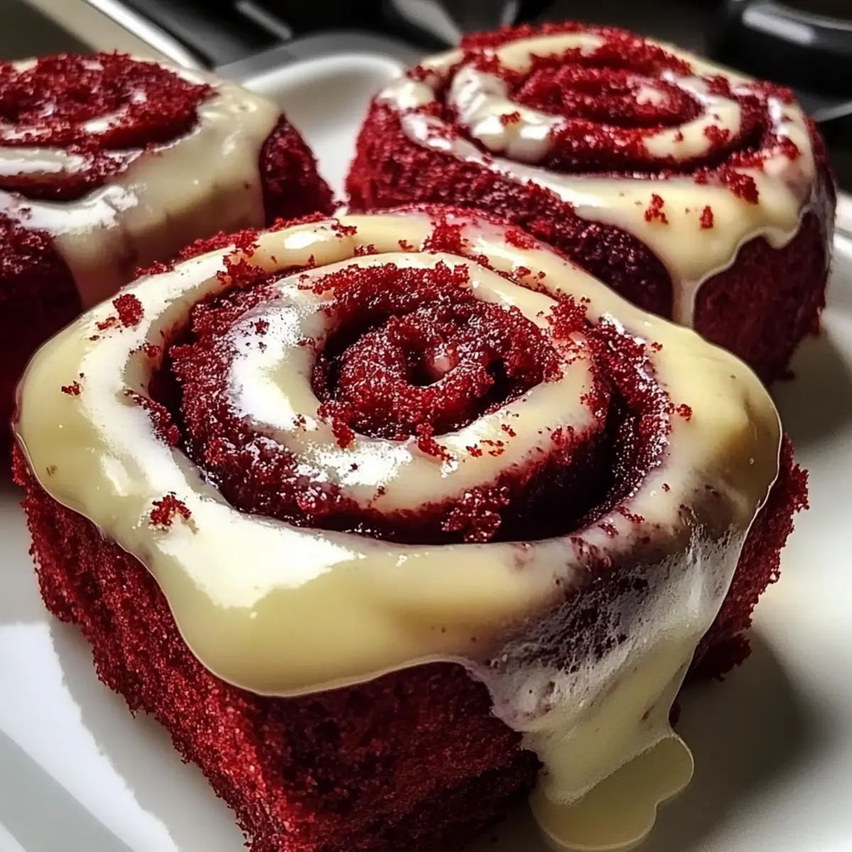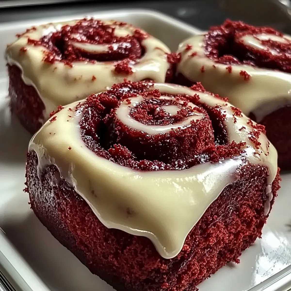 1. Serve immediately, enjoying these festive Red Velvet Cinnamon Rolls!