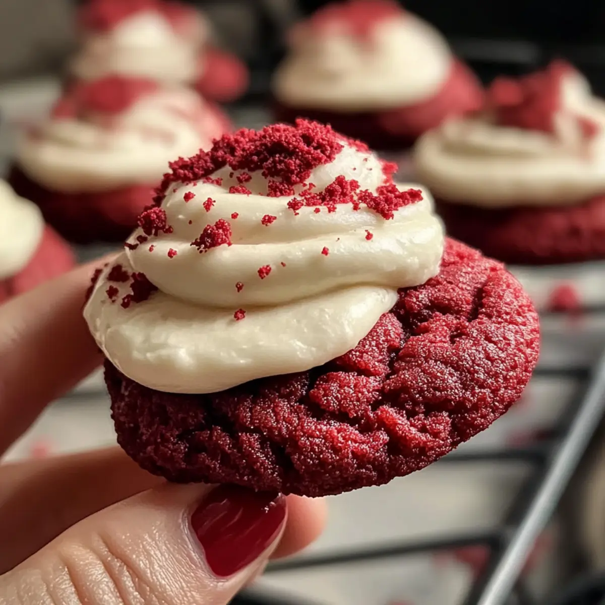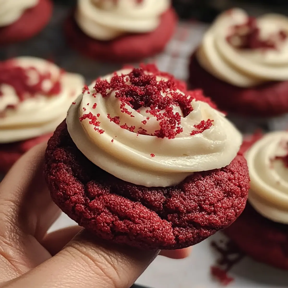 Visual Appeal: Drenched in vibrant red and topped with luscious cream cheese frosting, these cookies are a feast for the eyes.