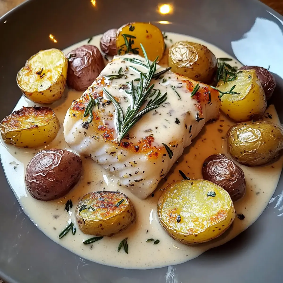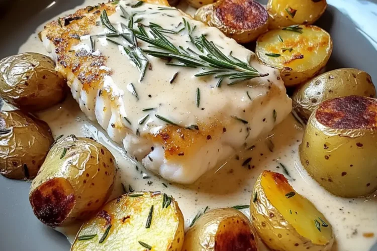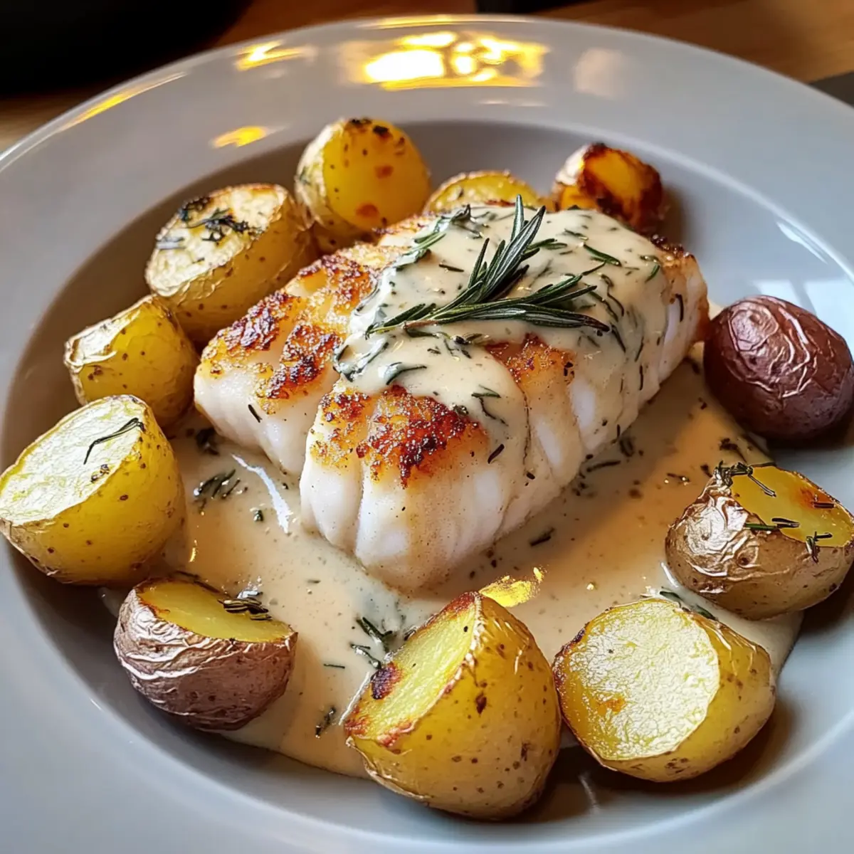 Plate the cod alongside the golden roasted baby potatoes, drizzling extra rosemary cream sauce over them for added richness. Garnish with fresh rosemary sprigs for a beautiful presentation and an inviting aroma. Your Rosemary Cream Sauce Cod & Roasted Potatoes is now ready to impress!
