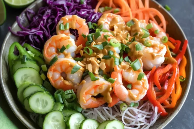 Delicious Spring Roll Bowls with Fresh Shrimp and Peanut Sauce