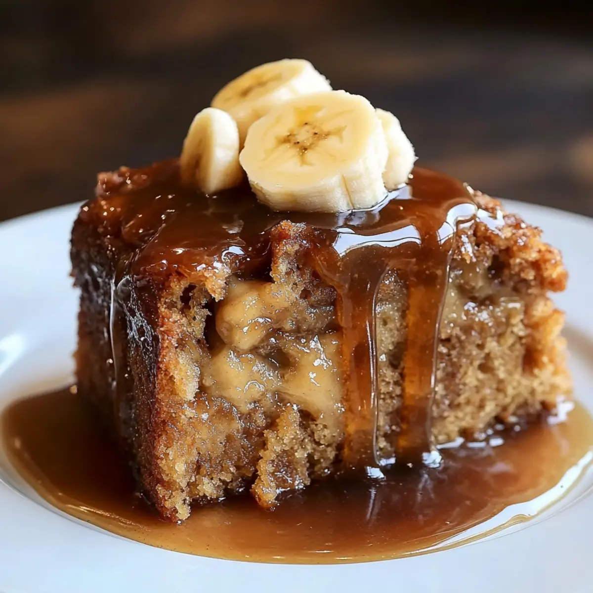 Sticky Banana Bread Pudding Cake is a delightful dessert that combines moist banana bread with homemade toffee sauce, perfect for sweet cravings.