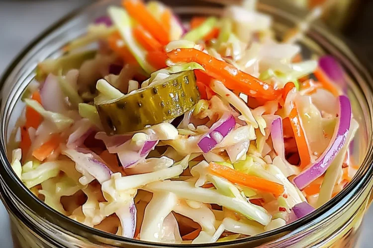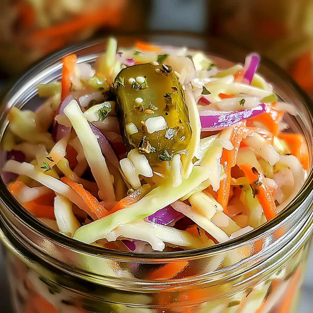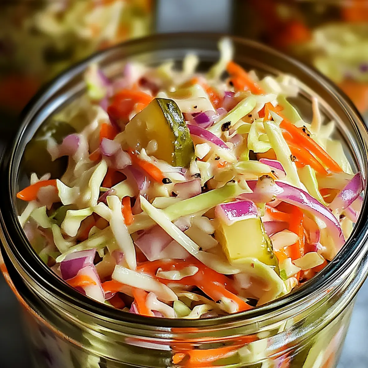Sweet & Tangy Twist: Use bread-and-butter pickles instead of dill pickles for a sweeter, tangier profile. This variation brings a delightful contrast that works beautifully with the slaw’s other flavors.
